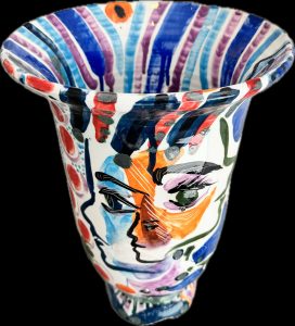 Παράλληλα, η σταθερή ενασχόλησή του με την κεραμική, τα τελευταία 20 χρόνια, δεν είναι απλώς υλική. Τον συναρπάζει όχι μόνο η σημασία της από την Αρχαιότητα έως την σύγχρονη τέχνη, αλλά και η χρηστική της αξία, ως λειτουργικό μέσο.. Εμπνευσμένο από τη φύση, τη μυθολογία και την ανθρώπινη μορφή, το κεραμικό του έργο αποπνέει τη φυσική ζωντάνια και την αβίαστη χαρά της Μεσογείου.